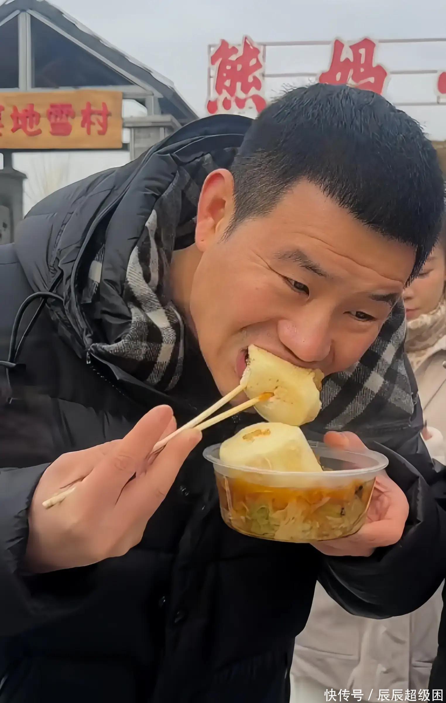 谢孟伟“复出”,现身河北乡镇大集,黄牙嗦大锅热菜还请糖葫芦