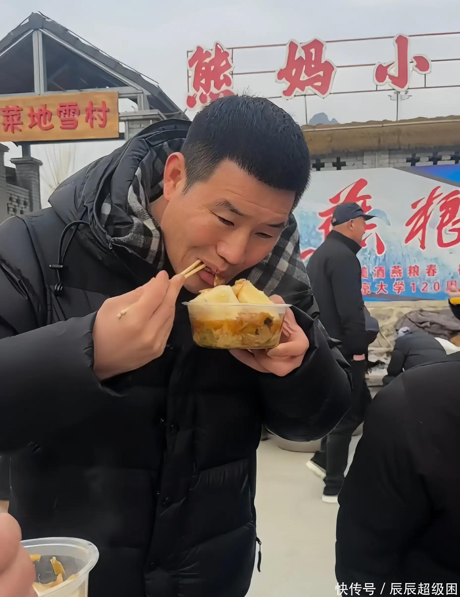 这样的场景里出现了一个熟面孔,他把这段画面放到社交平台上,贴上有关市场和烟火气的短句,定位就是这农村大集。屏幕里他穿着厚实羽绒服,外形有些松垮,拉链没拉,里面是普通的黑色打底衫,袖口还有点脏污,挤在人群里,一手拿白馒头,另一手端着大碗,舀着锅里炖得软烂的五花肉和吸饱汤汁的粉条,吃得很随意,嘴角粘了汤,露出不太白的牙齿,贵牌子的外套在他身上显得松松垮垮,那个牌子的标志被皱在一起,有种和周围农家气氛不搭的感觉。视频刚上传半天就有大量反应,有人觉得接地气,夸他没架子;有人怀疑,这次是不是要改观?几个月前他还在风口浪尖上。年轻时他是家喻户晓的童星,14岁因为一部电影里饰演的角色被很多人记住。后来他转行做网络直播带货,用亲昵的称呼称呼观众,用“亏本冲销量”“最后三分钟”这样的推销话术来拉销量。商业模式一转,他频繁地用直播卖商品,曝光率上去了,争议也来了。